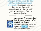 Le Snated-119, membre du réseau mondial Child Helpline International, soutient le projet "RADAR"de l'un de ses partenaires Missing Children Europe.